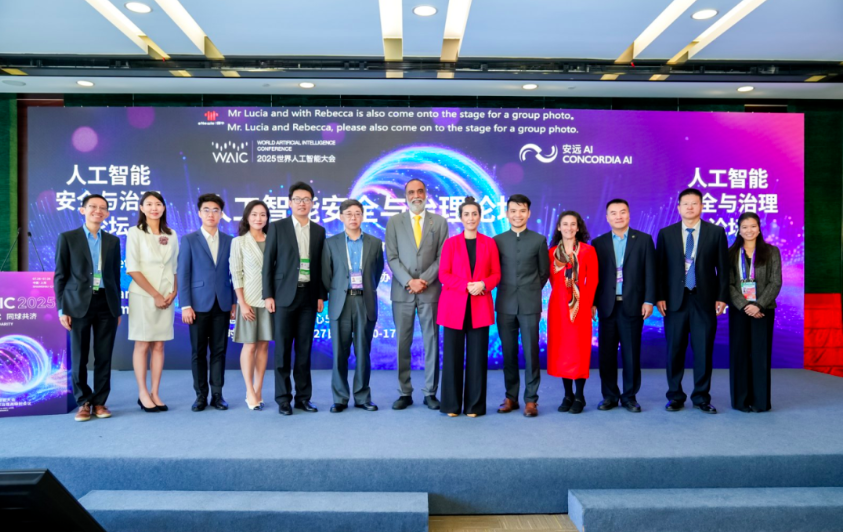 - Hosted the AI Safety and Governance Forum at the World AI Conference (WAIC). This was Concordia AI’s flagship convening of 2025—bringing together around 30 distinguished experts from around the world, including Turing Award winner Yoshua Bengio; United Nations Under-Secretary-General Amandeep Singh Gill; Shanghai AI Lab Director ZHOU Bowen (周伯文); Special Envoy of the President of France for AI Anne Bouverot; Distinguished Professor of computer science at UC Berkeley Stuart Russell; Peng Cheng Laboratory Director GAO Wen (高文). We had 200+ in-person attendees and 14,000+ livestream views. The Forum was covered my multiple media outlets, including Bloomberg, Wired, Caixin, IT Times, and Tech Review Africa. We also co-hosted/hosted multiple side events and expert workshops and served as official AI Governance Advisor for WAIC 2025.